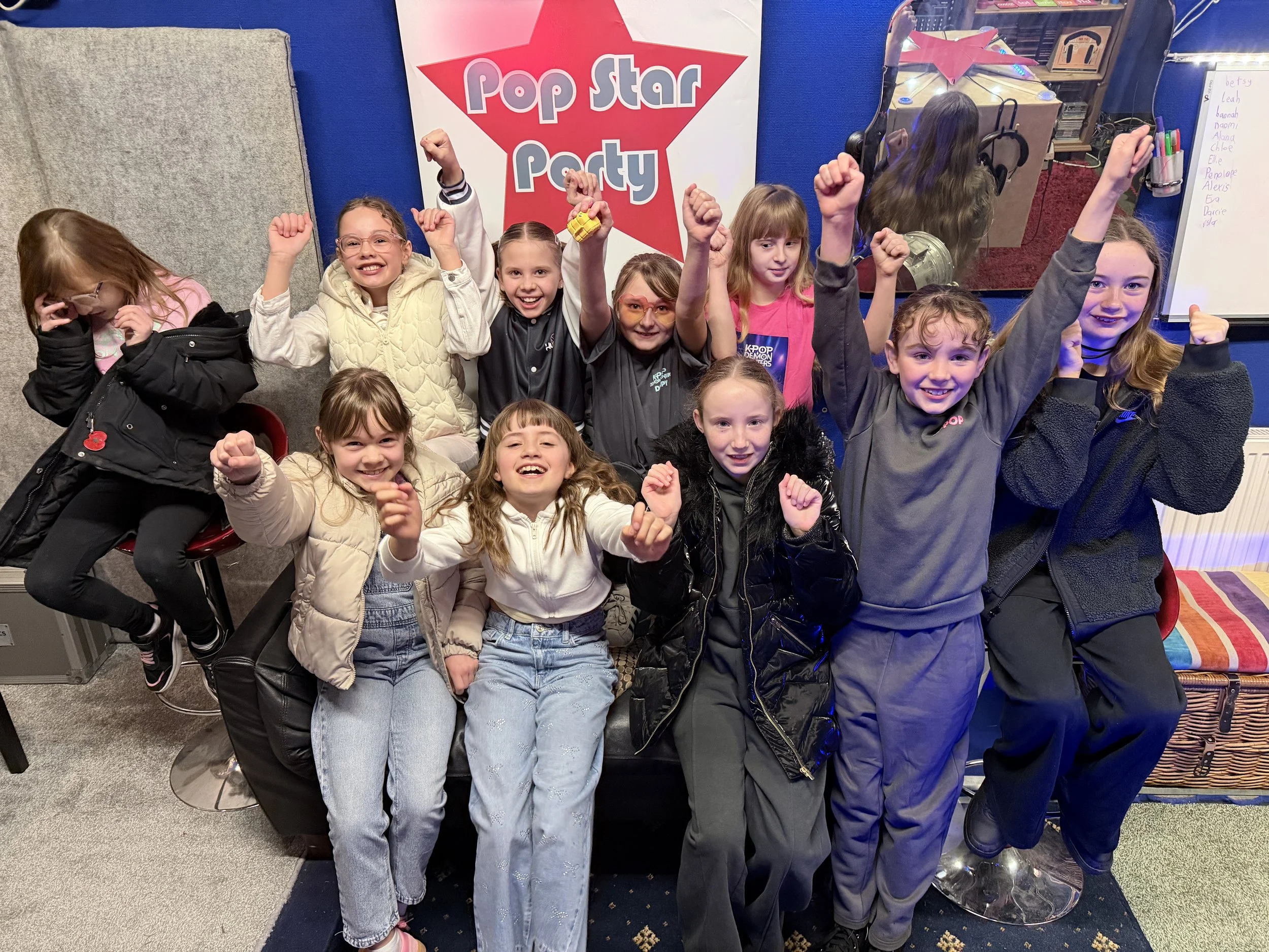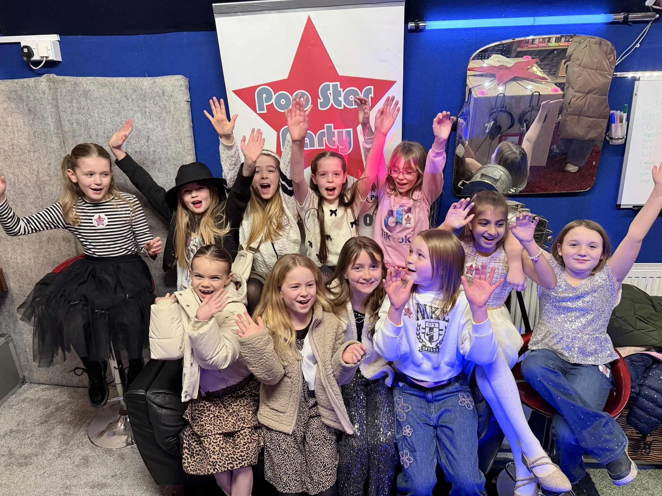 Choose the package that suits your child, your group, and the kind of birthday experience you want to create. Every Pop Star Party is run in a real recording studio near Coventry and guided from start to finish, so it feels exciting for children and easy for parents. From high-energy group singing to red carpet photos and video memories, there’s a package for every kind of star.